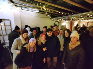 „Das gemeinschaftliche Verspeisen vorweihnachtlicher Köstlichkeiten in angenehmer Gesellschaft“ – so haben wir den Titel unseres Events vorab definiert. Die Definition wurde Realität: Wir erkundeten gemeinsam den Oberurseler Weihnachtsmarkt. Wir ließen uns knusprige Fladenbrote, deftige Bratwurst und süße Crepes, Glühwein und Punsch schmecken. Besonders gute Gespräche führten wir auf einem gemütlichen Hinterhof in der Strackgasse: Wir erkannten hilfreiche berufliche Verbindungen, gaben uns Tipps für’s Coworken, tauschten uns über Nutzung und Nutzen von KI aus … Und freuten uns über das Staunen einiger unserer Gäste darüber, wie schön es in Oberursel in der Altstadt und auf dem Weihnachtsmarkt ist. Für eine Fahrt mit der Dampfeisenbahn waren wir leider zu spät. Zum Abschied gab es für alle Gäste eine süße Überraschung.